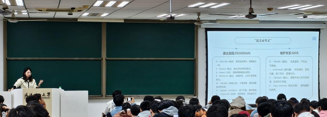 最后,关于关系升级,胡霞老师提出:大多的人际关系以肤浅的的信息交流为起点,然后逐渐转向更有意义的披露。并分享了“阶梯式自我展露”理念,建议从兴趣爱好到深层想法逐步推进交流,发起话题时聚焦“人的感受”,同时鼓励大家进行“脆弱练习”,适度披露无伤大雅的小烦恼、小尴尬并鼓励适度“脆弱练习”;明确宿舍矛盾“协调者”需保持中立、耐心倾听、温和调解,超出能力范围时及时求助老师。