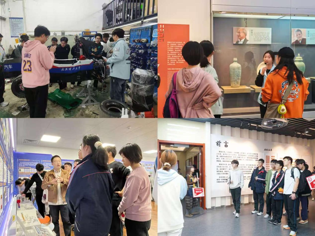 “感受理工”系列参观环节,晴川学子在越苑食堂用餐后,分四组在志愿者陪同下,交叉参观了校史馆、艺术馆、材料复合新技术全国重点实验室、“引擎”大学生创新创业基地等学校代表性文化、科技创新场域。
