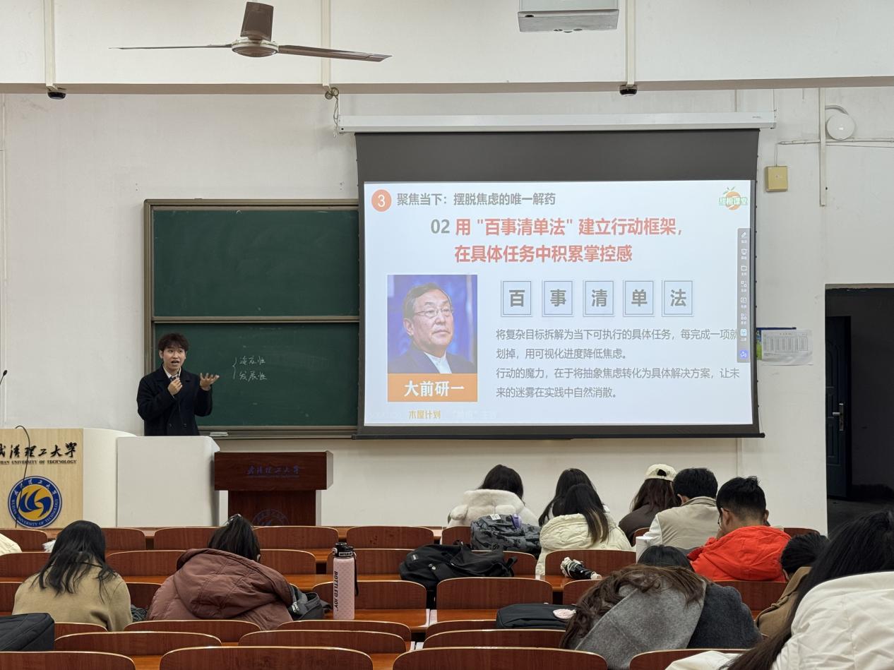 必赢3003no1线路检测中心本科2022级分别于11月16日下午(针对土木类专业)和11月17日上午(针对建筑类专业),举办了两场以“不要提前焦虑2小时和8公里以外的事情”为主题的年级周课。本次活动旨在帮助同学们正确认识和处理学业与成长中常见的焦虑情绪,引导大家聚焦当下,培养从容平和的心态。