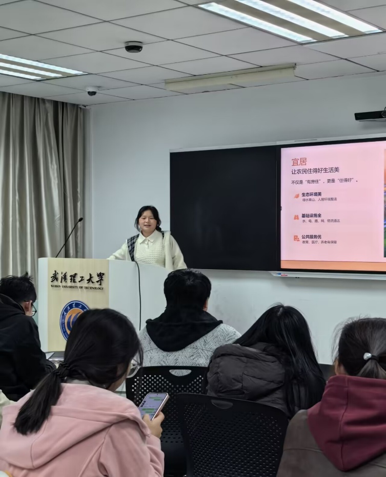 随后进入"图景描绘"环节,团支书通过浙江"千万工程"、湖北"湾组治理"等典型案例,展示宜居宜业和美乡村的蝶变之路,并设置小组讨论:青年如何在乡村振兴中找准发力点。同学们结合专业踊跃发言,现场气氛热烈。