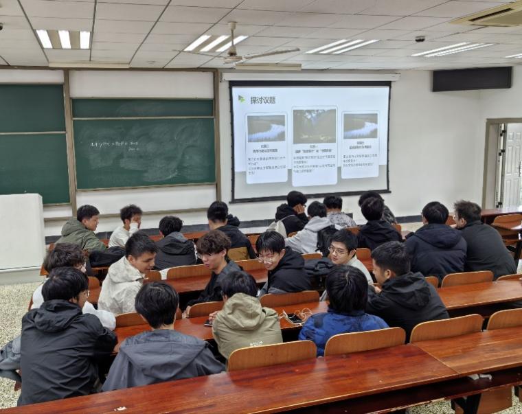 在“研讨与共识”环节,同学们围绕三个议题展开小组讨论:一是如何理解“践诺笃行”在应对气候变化中的重要性;二是中国为何及如何能够“共同书写全球气候治理新篇章”;三是团支部如何更好组织青年发挥作用。讨论现场气氛热烈,同学们结合专业背景与生活实际,提出了许多具有建设性的观点。