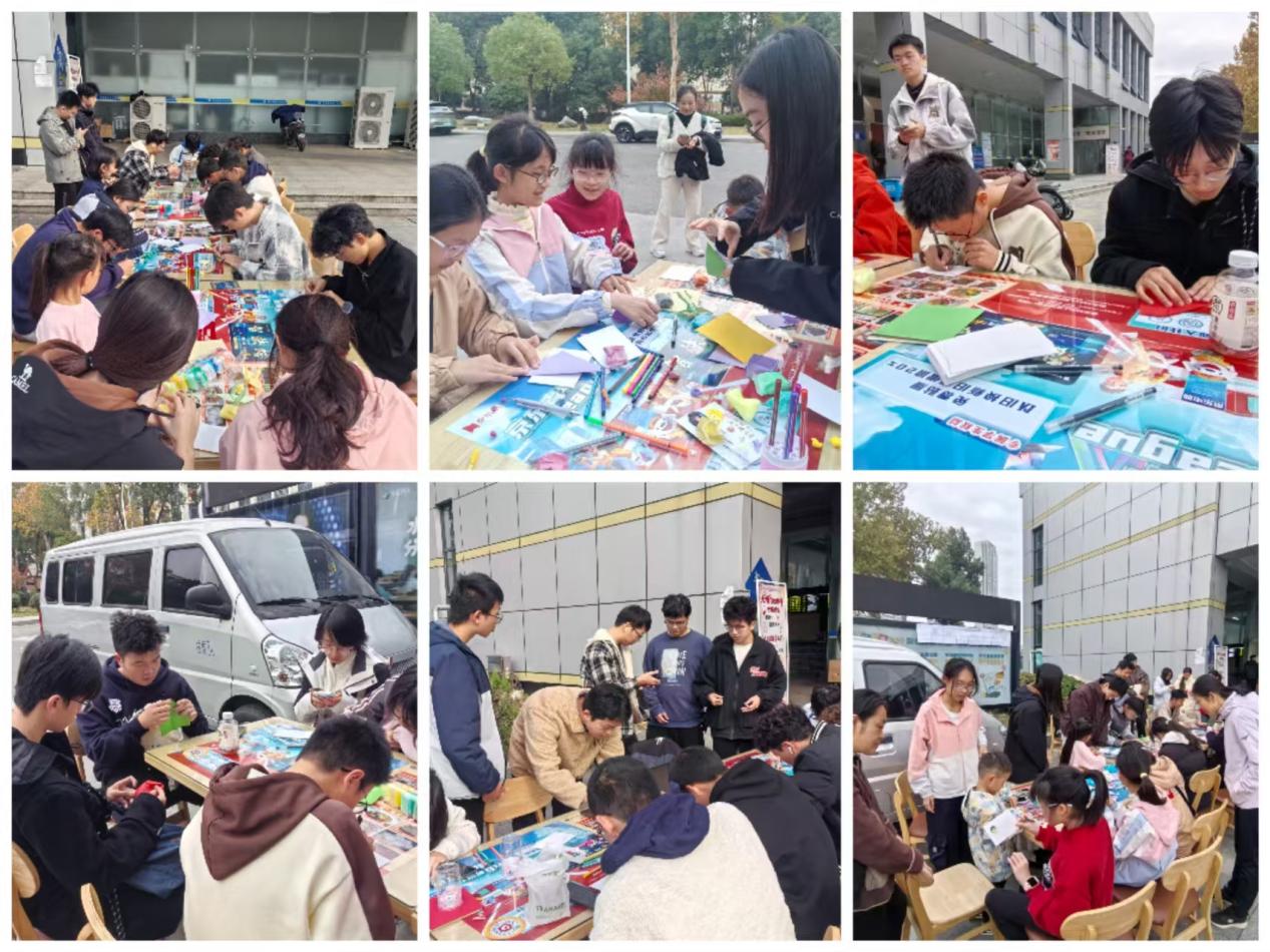 活动当日,精心布置的摊位在午后的阳光下格外醒目,“尺素传情,砖瓦凝爱”的主题海报吸引着过往师生驻足。团支部同学们热情地介绍活动初衷,邀请大家为校内外的工地工友们写下祝福、绘出心意、折出感恩。一时间,方寸摊位前汇聚起阵阵暖流,同学们纷纷提笔,让情感在笔尖流淌。