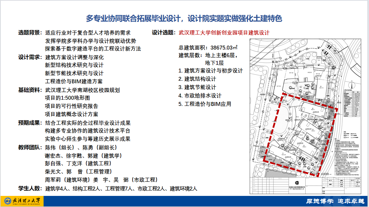 陈伟副院长介绍了本届联合毕业设计的基本情况。明确了本次毕业设计以“必赢线路检测3003创新创业园项目建筑设计”为核心选题,紧扣行业复合型人才培养需求,依托学院多学科办学与设计院联动优势,探索数字建造平台下的工程设计新方法。项目依托南湖校区1:500地形图、可行性研究报告等真实基础资料,要求学生在教师团队指导下完成从方案调整到技术深化的全过程设计,真正实现“做中学、学中做”。